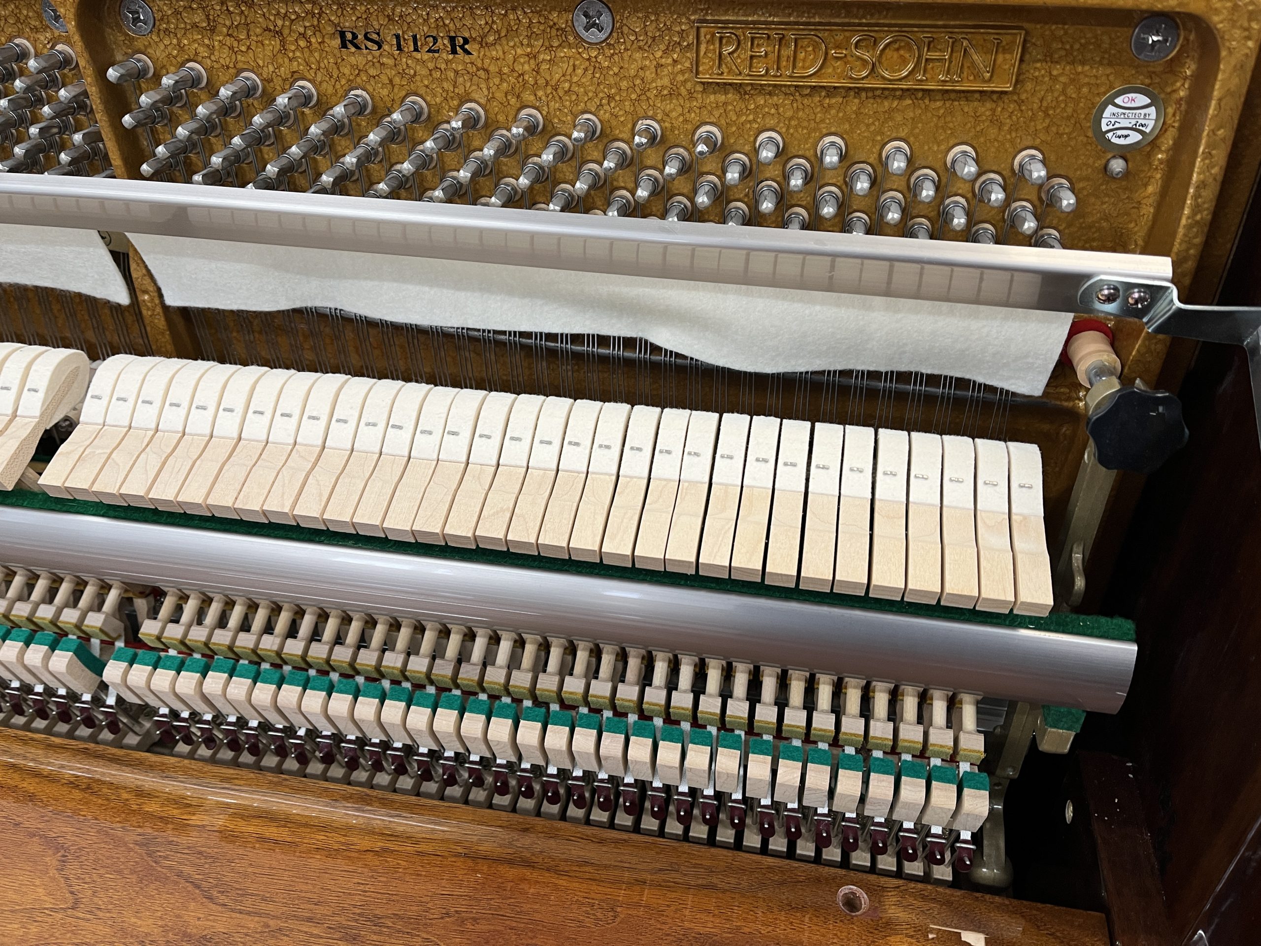 Reid Sohn RS-112R Mahogany Satin Pedal 88 Key,Upright piano, This piano is in Immaculate condition with rare Inlay has a lovely tone,